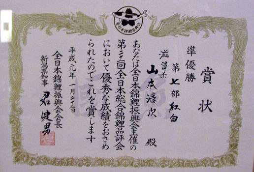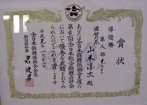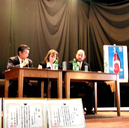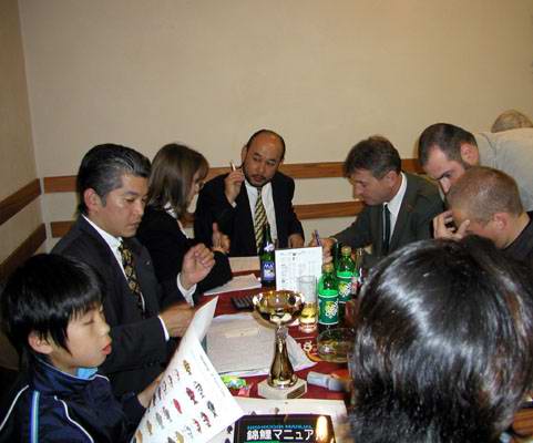 Z prava Japonský president chovatelů KOI kaprů Takayuki OGAWA, překladatelka a generální manažer Hishibu koi farm Junji YAMAMOTO |