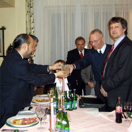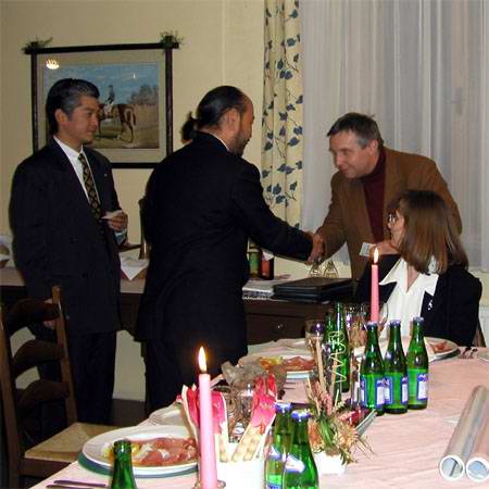 Karel Šerák prezident SUISEKI předává suiseki jako dárek z ČR |