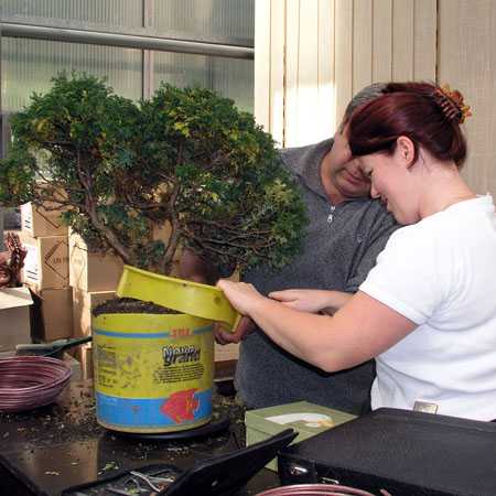 Natvarovaná borovice s budoucí miskou + výchozí stav |