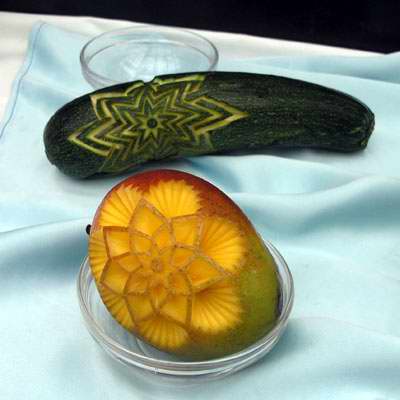 Vhodné je vyřezávat do plodů a zeleniny která mají kontrast z dužninou |