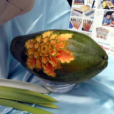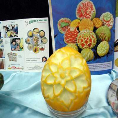 Květ vyřezaný do cukrového melounu |
