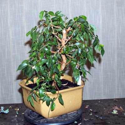 Natvarovaný a přesazený fíkus (15 cm) + výchozí stav |