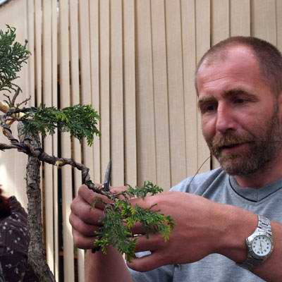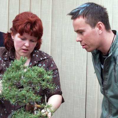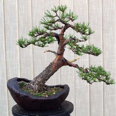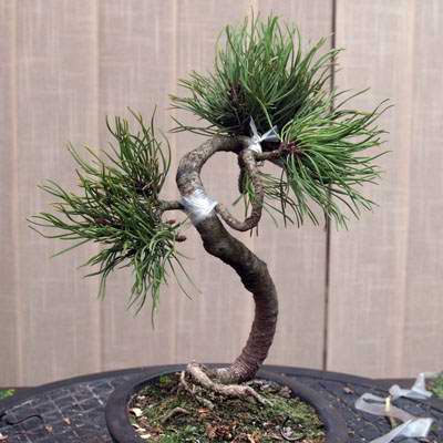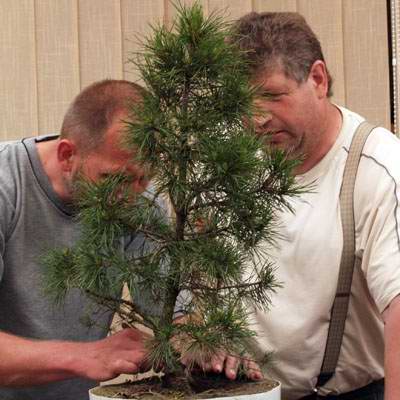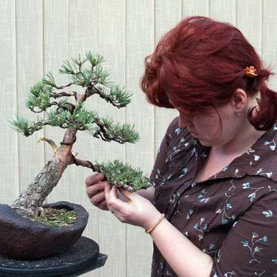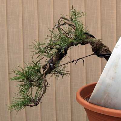 Natvarovaná borovice kde se musí protrhar jehlice které trčí dolů |