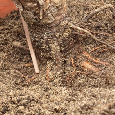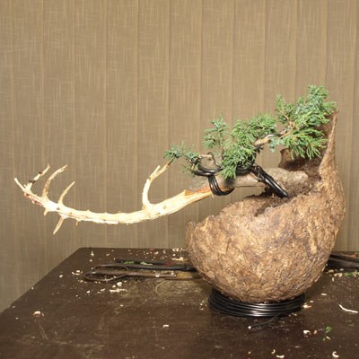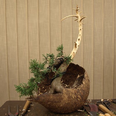 | tento modřín byl bez kořenů nařezal se kmen,zasypal se pískem a zeminou a toto je výsledek |