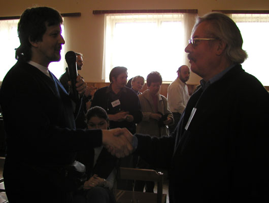![]() Jan Stropnický gratuluje Václavu Wiesnerovi za druhé místo |